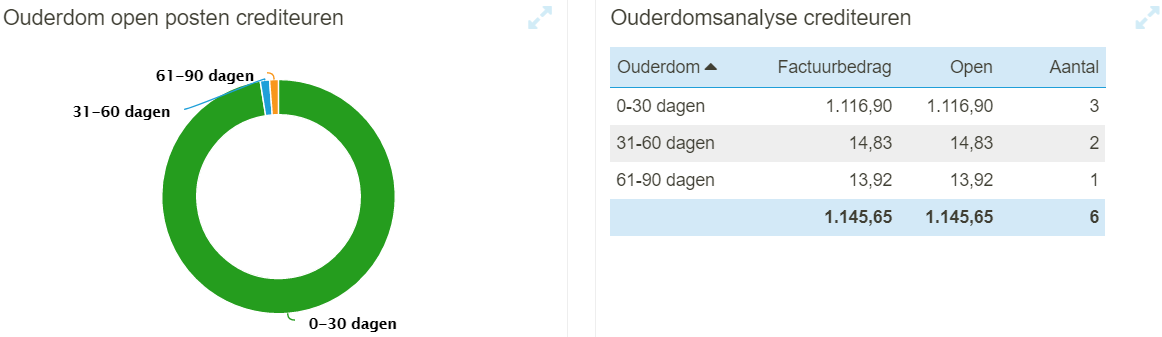 Naast een overzicht van de resultaten en diezelfde resultaten in verder detail heb je ook altijd inzicht in de debiteuren en crediteuren.