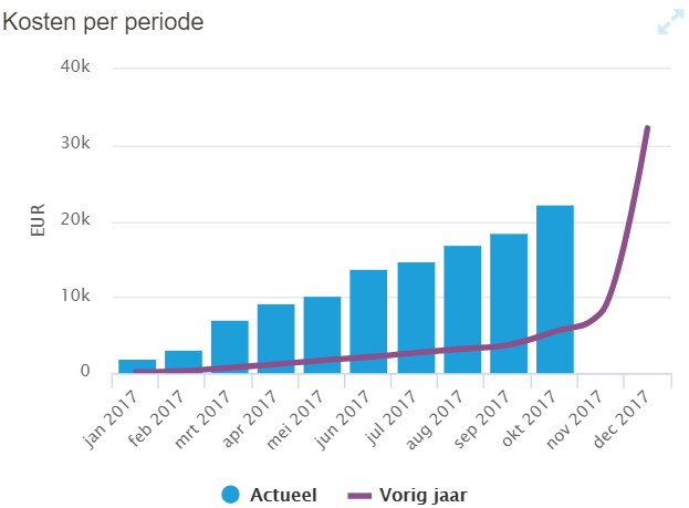 Hier vind je een overzicht van de kosten per periode in vergelijking met het voorgaande jaar.