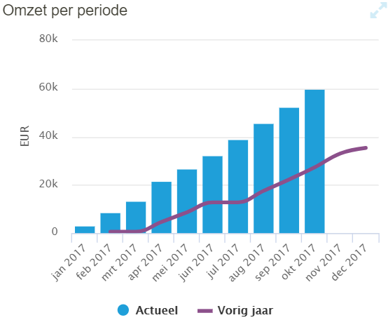 Hier vind je een overzicht van de gemaakte omzet per periode in vergelijking met het voorgaande jaar.